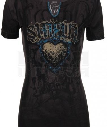 Футболка Affliction Sinful Crown Jewels Baby Tee из оригинальной коллекции Afflction. Модель создана из 100 % натурального хлопкового материала. Детали: фирменная состаренная ткань от Affliction, уникальное нанесение рисунка на футболку.