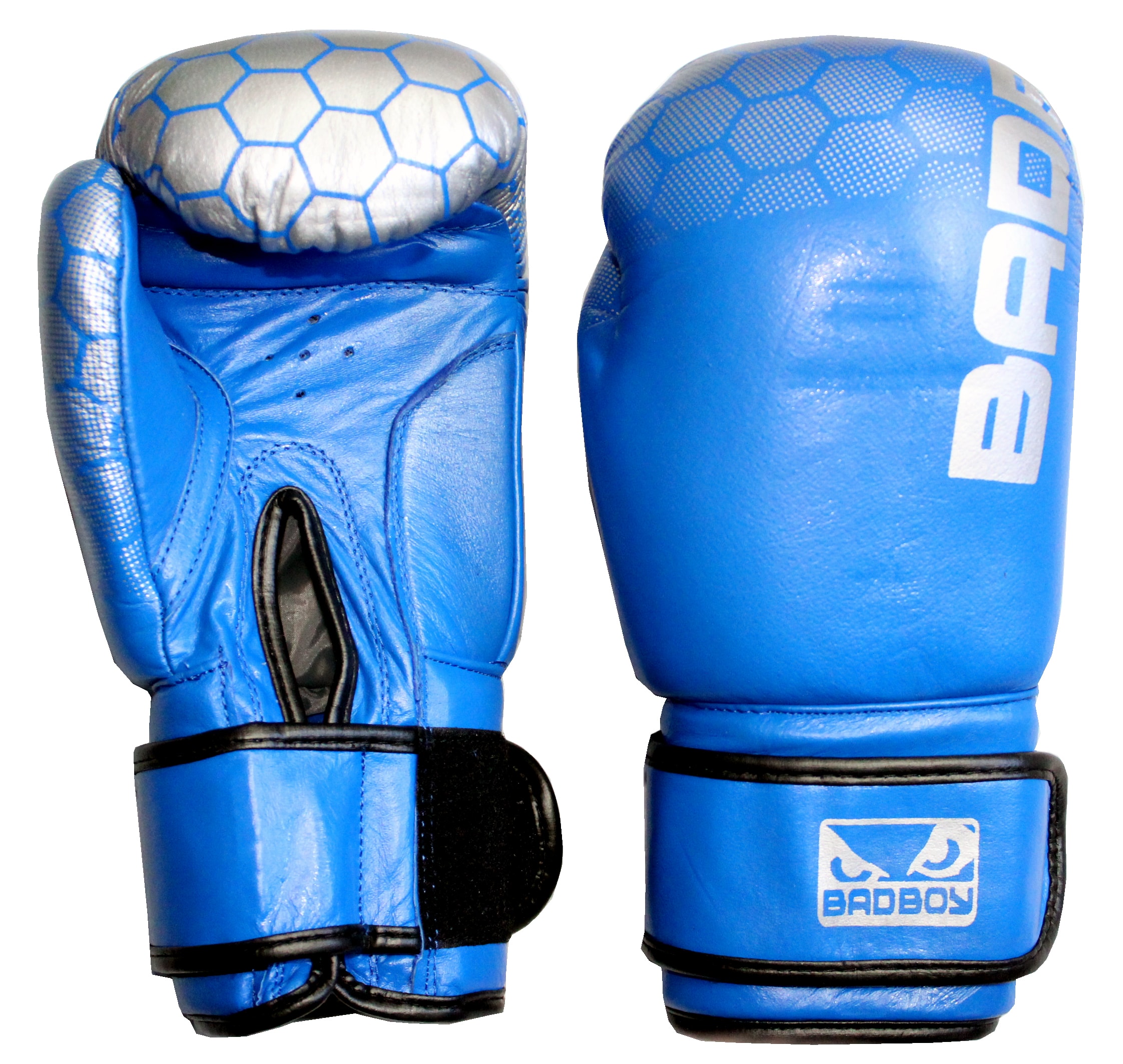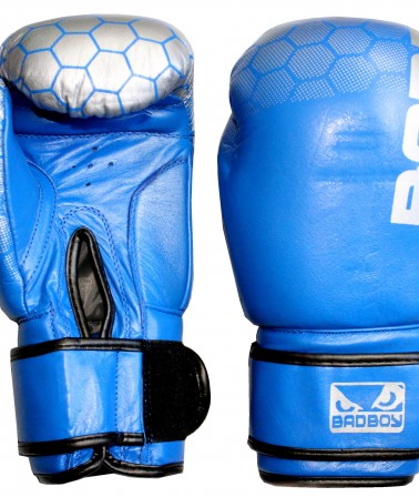 Перчатки боксерские Bad Boy Blue Silver кожаные (в чехле)