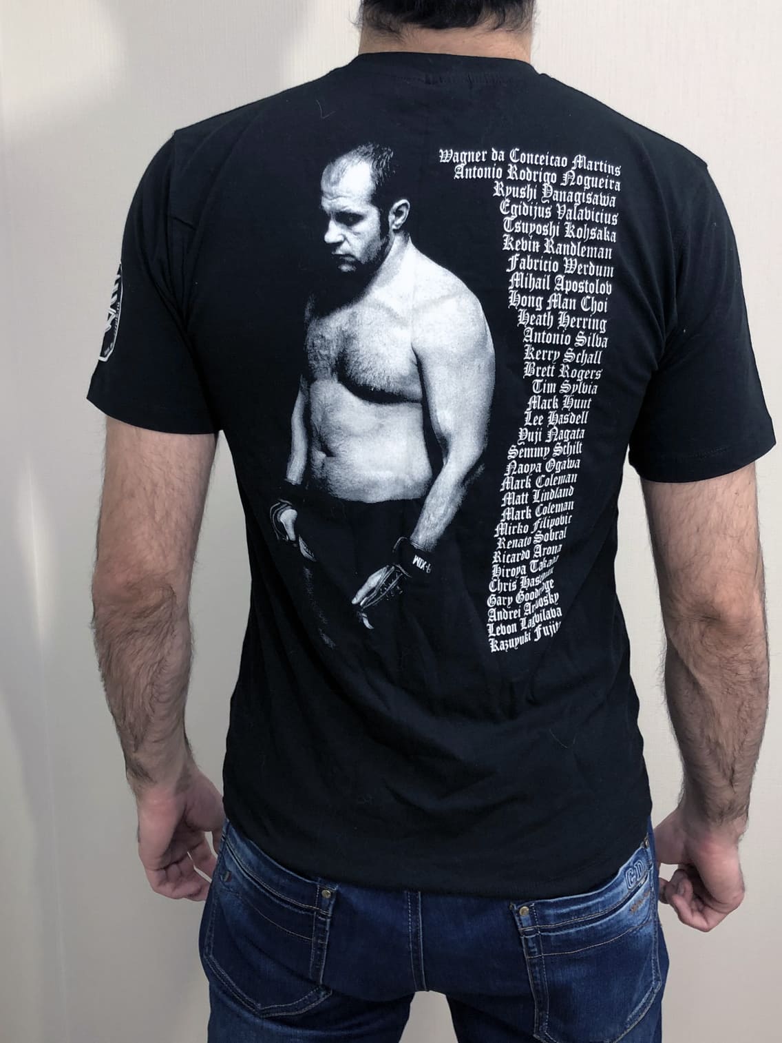 Футболка Fedor The Last Emperor The Path. Футболка, на спине которой написан список бойцов, с которым Емельяненко встречался на пути к своему становлению Легендой ММА.