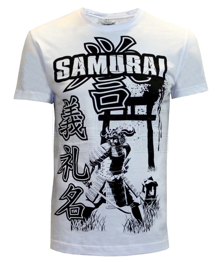 Отличная светлая футболка из серии Warriors. Изображен самурай во всей экипировке, а также нанесены японские иероглифы.