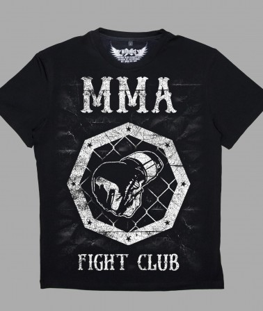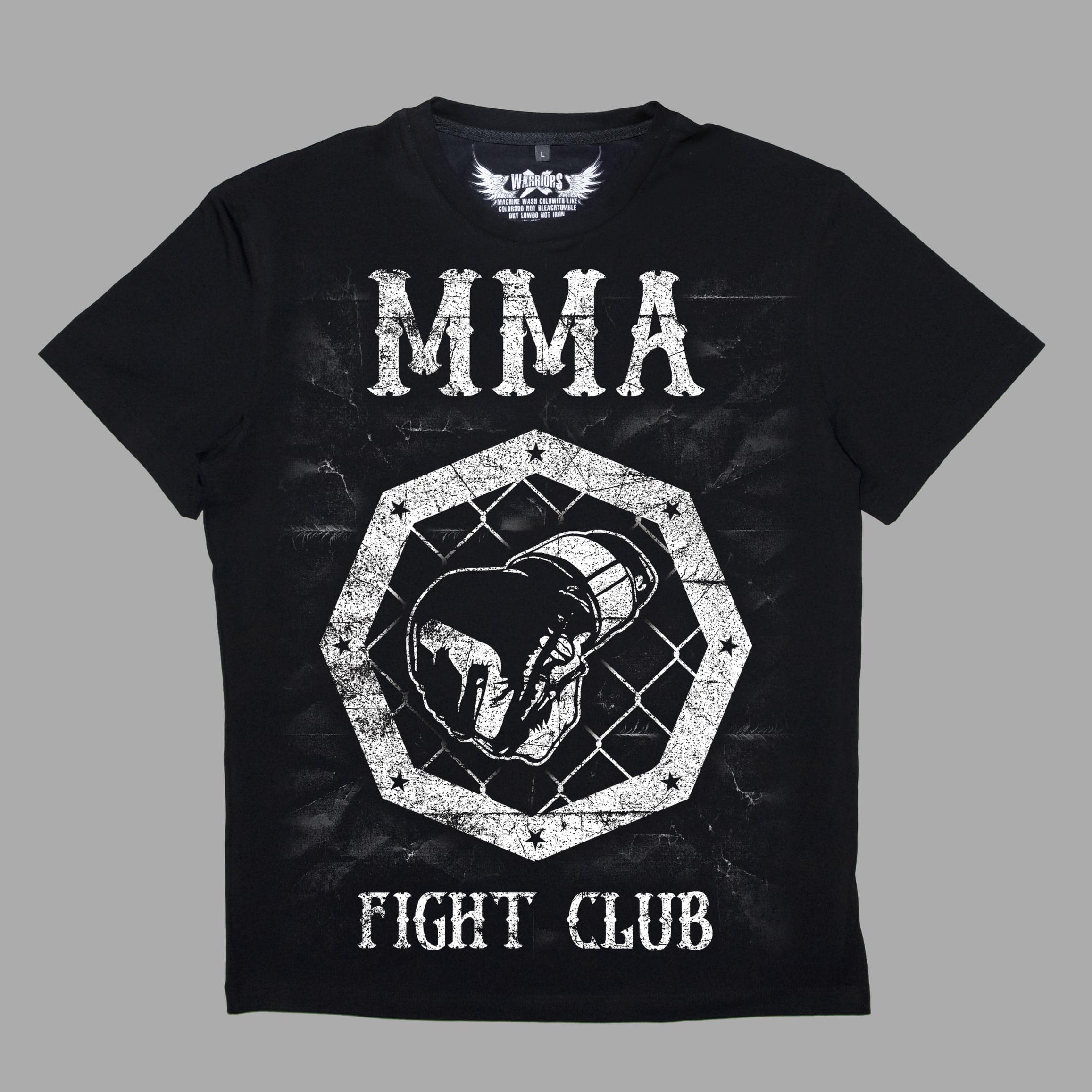 Футболка MMA Fight Club WarriorsX. Черная футболка из новой серии WarriorsX. Белый рисунок на черном фоне - это визитная карточка этой серии. Легкая перчатка для ММА на фоне восьмиугольника.