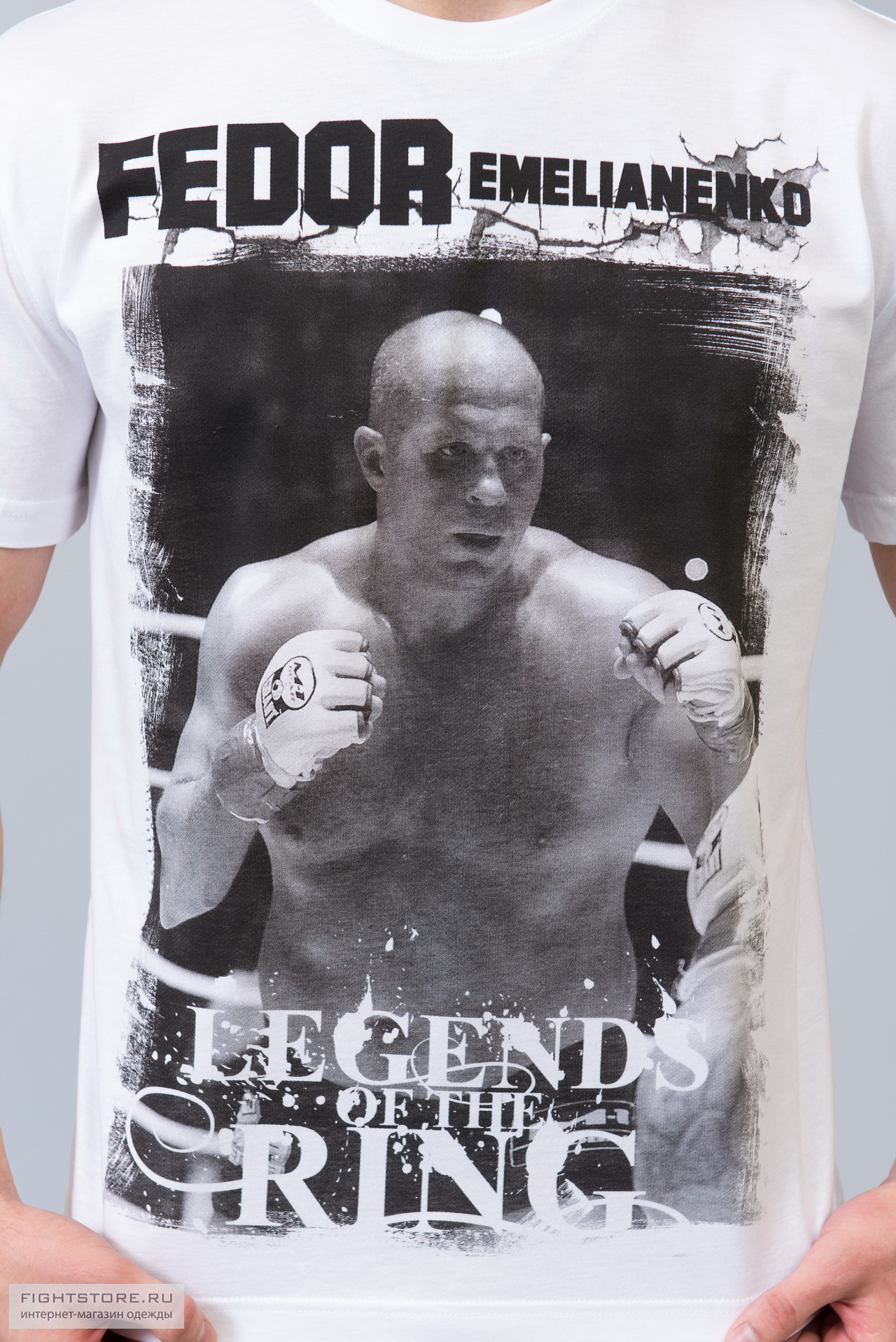 Футболка Федор Емельяненко - легенда ринга, белая. Модель создана из 100 % натурального хлопкового материала. Детали: модный крой, на лицевой стороне крупный принт с изображением известного спортсмена Федора Емельяненко.