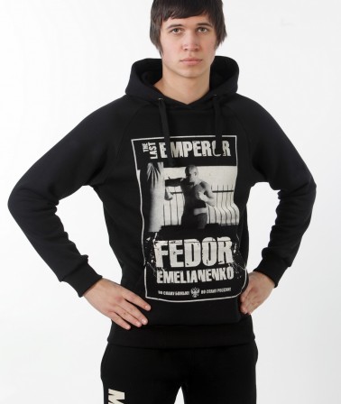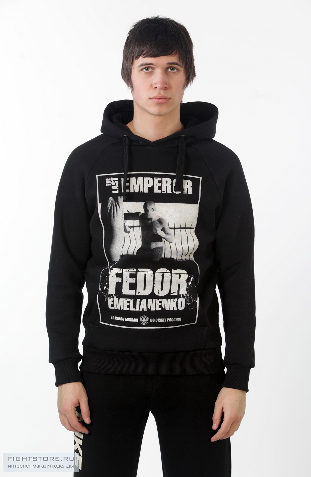 Федор Емельяненко EMPEROR, толстовка черная. Модель создана из 100 % натурального хлопкового материала. Детали: модный крой, на лицевой стороне крупный принт с изображением известного спортcмена Федора Емельяненкои и надпись The Last Emperor (пер. Последний император).