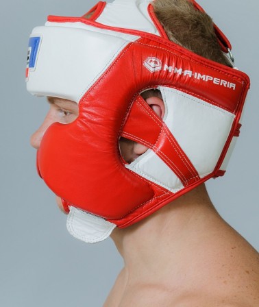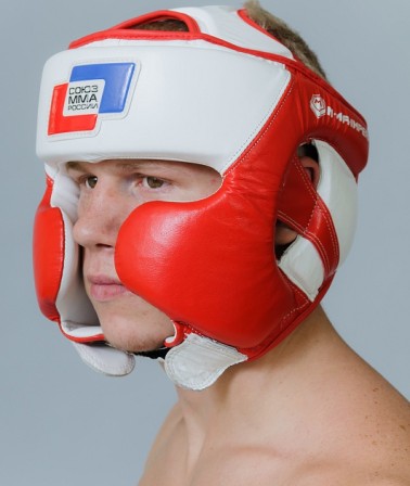 Шлем Союз ММА, М-1 Imperia Pro от бренда бойцовской экипировки М-1. Шлем с защитой челюсти и ушей, надежная липучка сзади, крепления сверху по контуру головы.