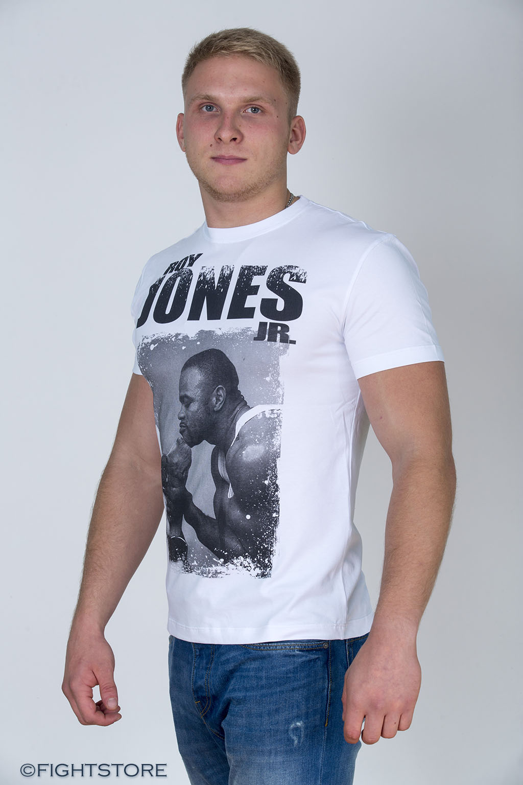 Футболка с изображением  американского боксёра-профессионала, абсолютного чемпиона мира, одного из самых талантливых бойцов современности Роя Джонса младшего (Roy Jones Jr). Рой Джонс участвовал в Олимпиаде, многократно становился лучшим боксером года, получал признание журналистов как «Боксёр десятилетия». Как хип-хоп исполнитель известен своим хитом "Can't be touched", который теперь используют боксёры при выходе на ринг по всему миру.