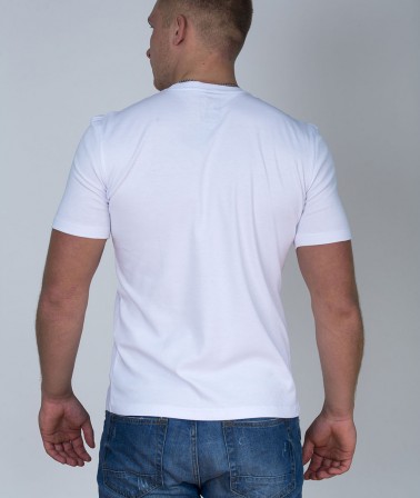 Футболка выполнена из материала используемом модным домом Armani. Приятный на ощупь мягкий однородный стрейтч материал, не теряющий форму при длительном использовании, хорошо сидит и выгодно подчеркивает фигуру человека.