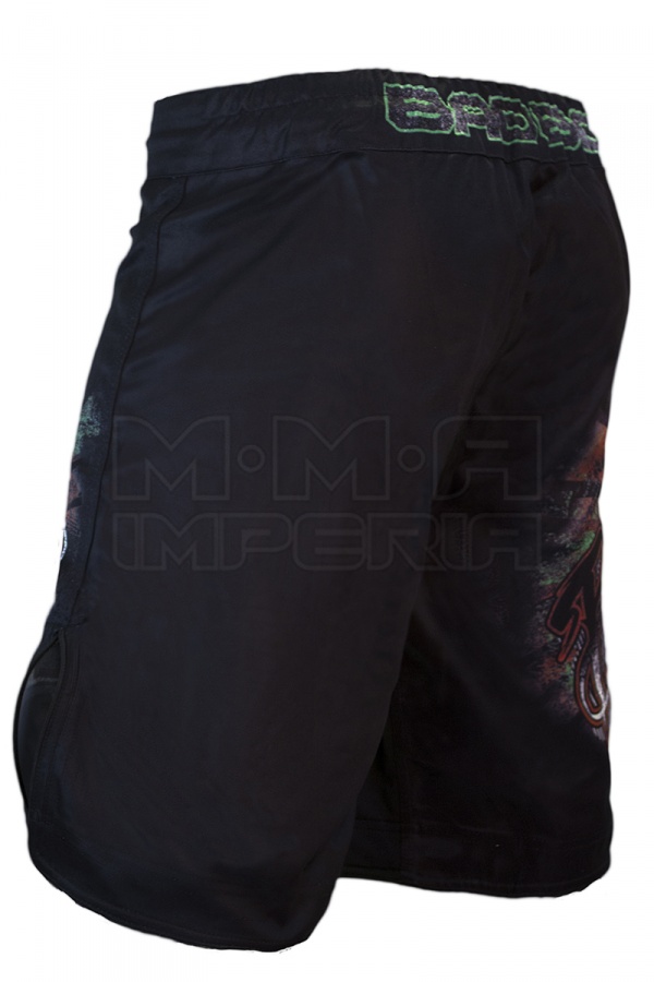 Шорты сшиты из прочного материала, очень лёгкие, обеспечивают высокую подвижность. Специальные прорези по бокам обеспечивают необходимую подвижность шорт при ударах ногами, поясное крепление устроено таким образом, что вам не придется поправлять шорты во время тренировок и выступлений. Рисунок нанесен на специальном оборудовании и не стирается даже при многочисленных стирках.