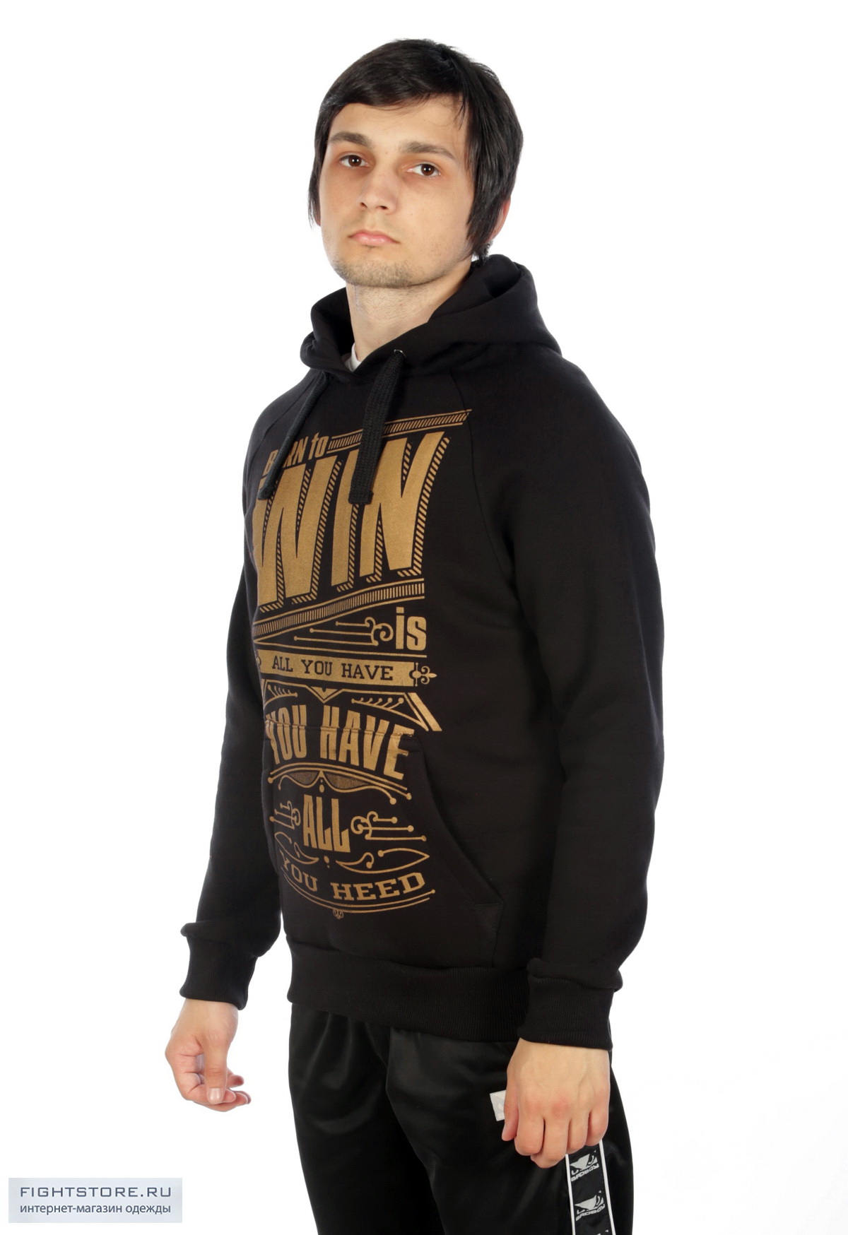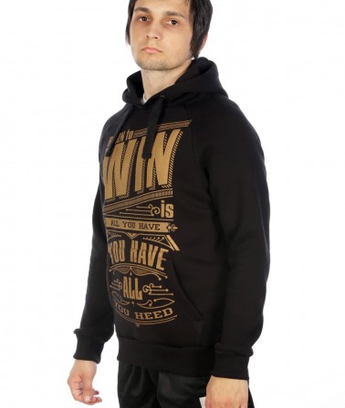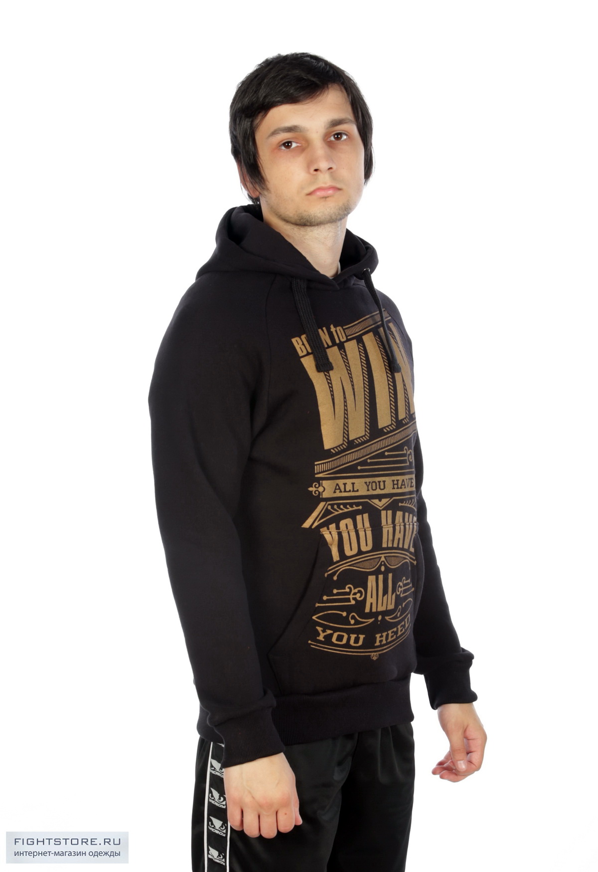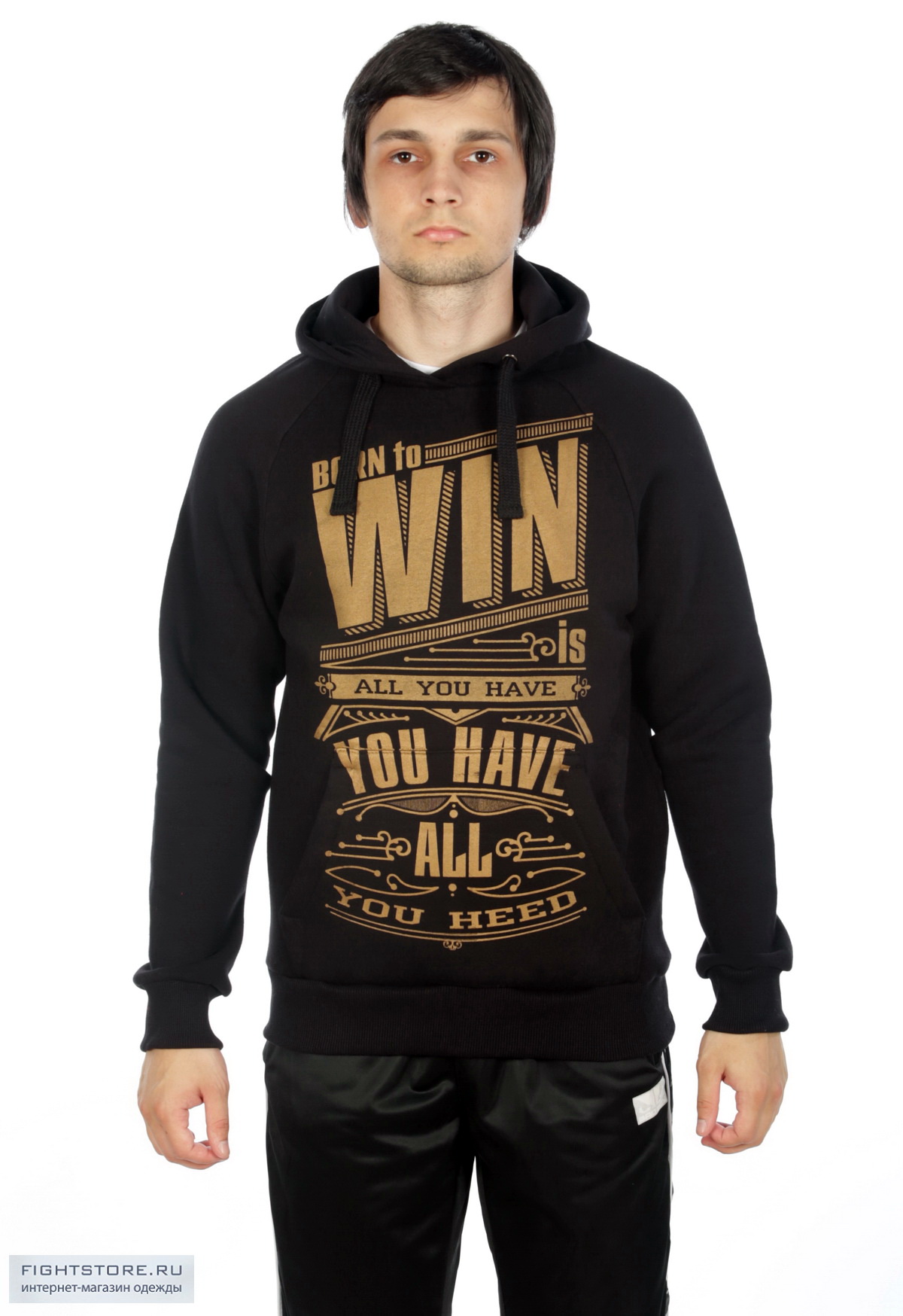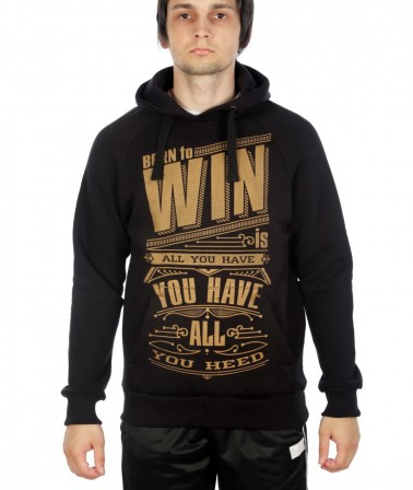 Черная толстовка худи с капюшоном All you have из высококачественного материала. Спереди принт с надписями выполненными золотой краской Born to Win (пер. Рожденный побеждать) и You have all you need (пер. У тебя есть все что необходимо, прим. для победы). Уникальная толстовка для поклонников стильной одежды с символикой единоборств и ММА.