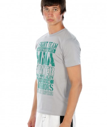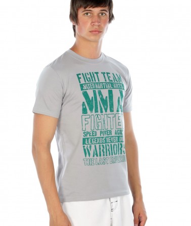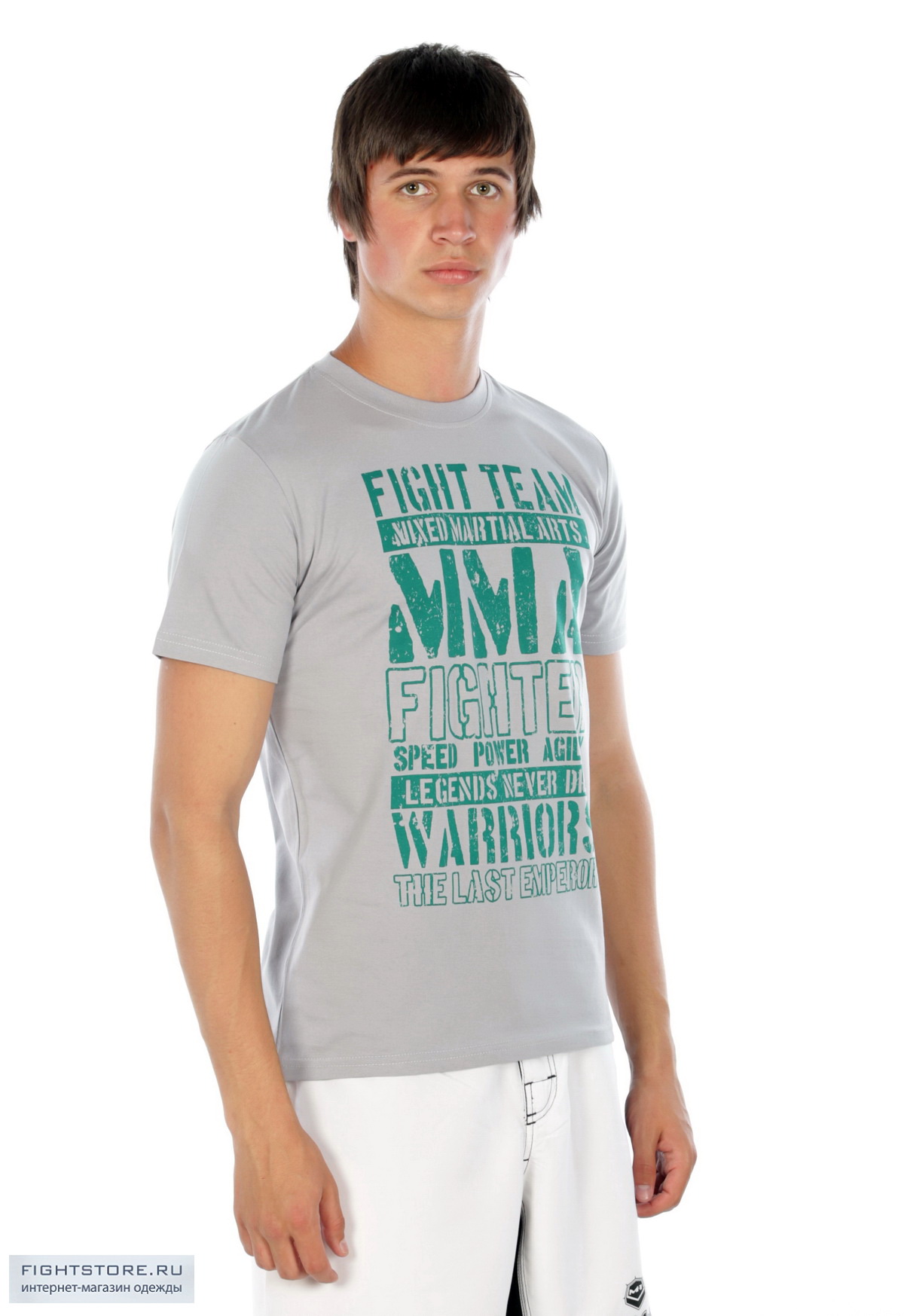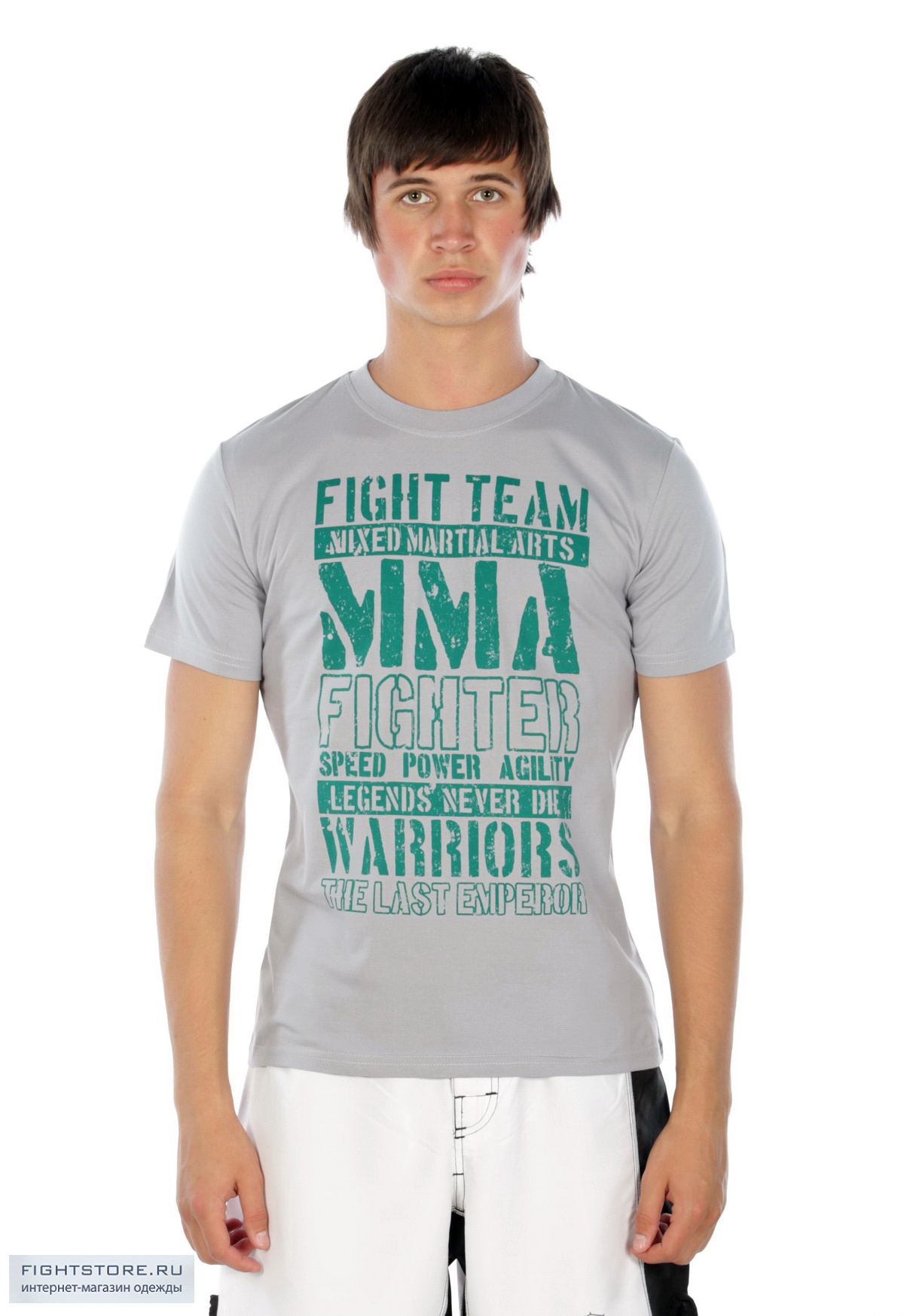 Серая футболка MMA FIGHTER из стопроцентного хлопка, в ней воздух будет свободно проникать к телу, давая коже дышать. Спереди принт с надписями выполненными зеленой краской: FIGHT TEAM, MMA FIGHTER, LEGENDS NEVER DIE, THE LAST EMPEROR, MIXED MARTIAL ARTS, POWER SPEED AGILITY. Уникальная футболка для поклонников стильной одежды с символикой единоборств и ММА по самой выгодной цене в интернете.