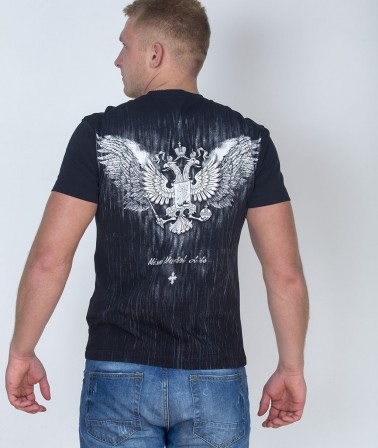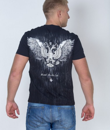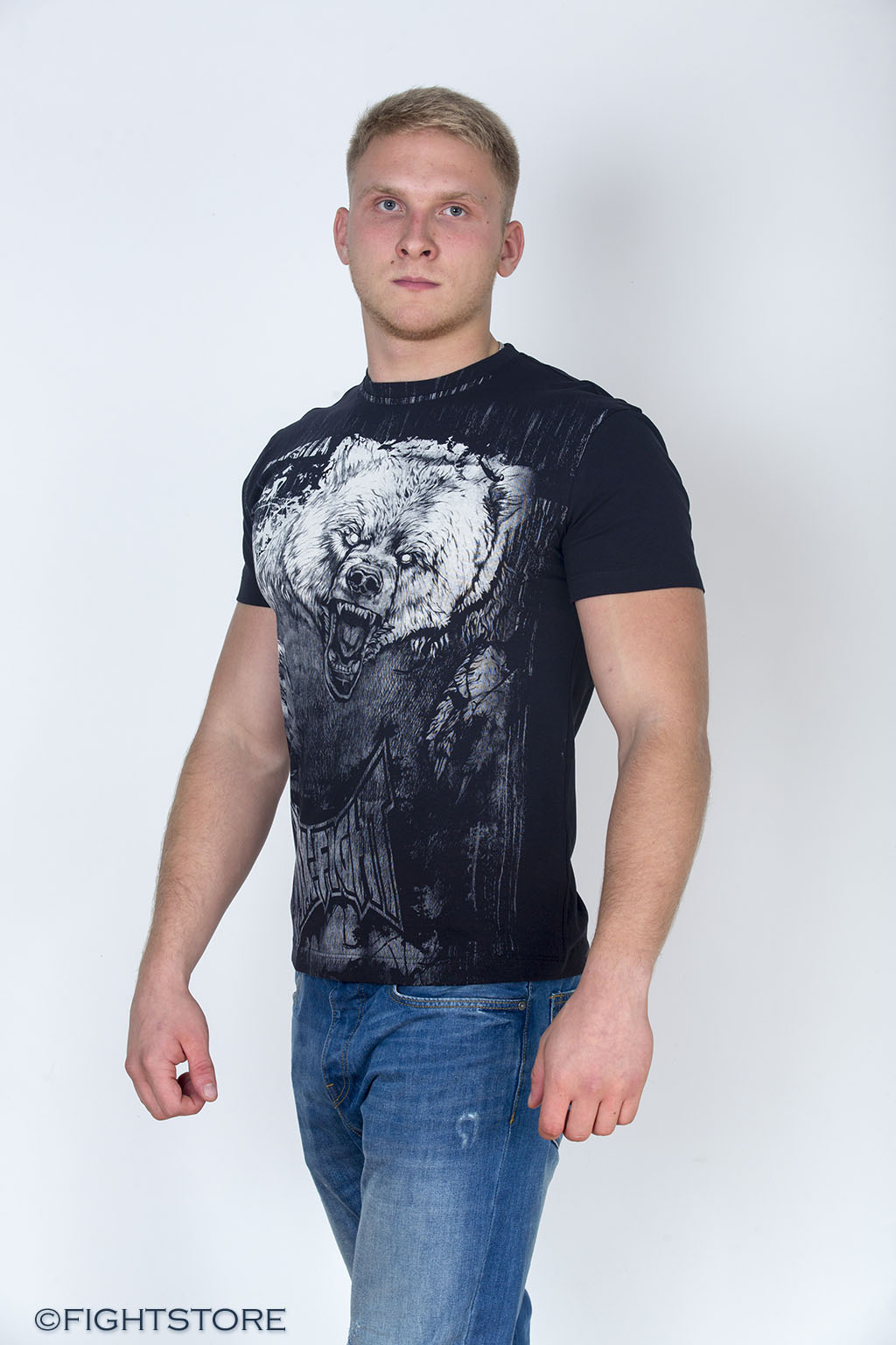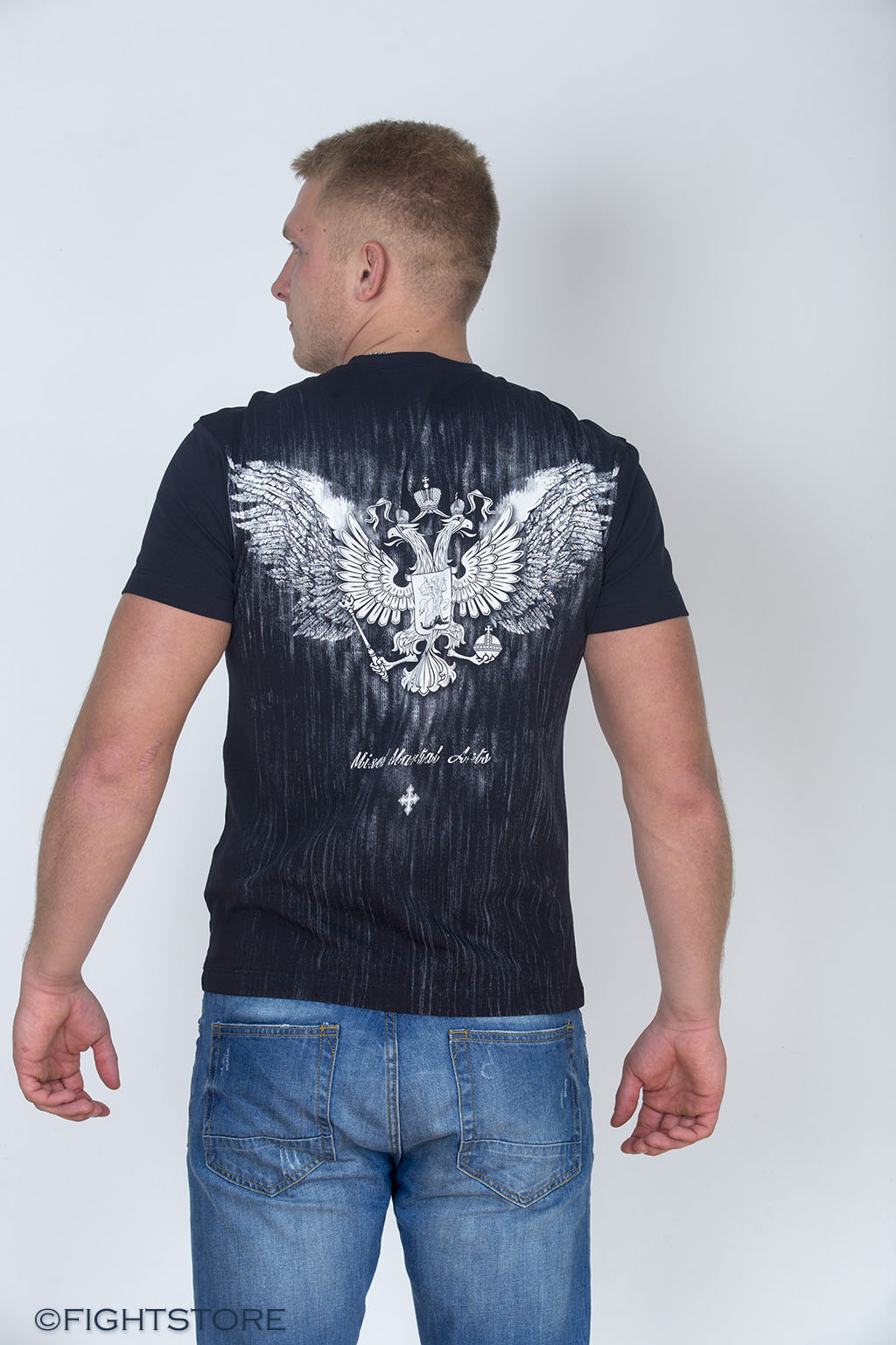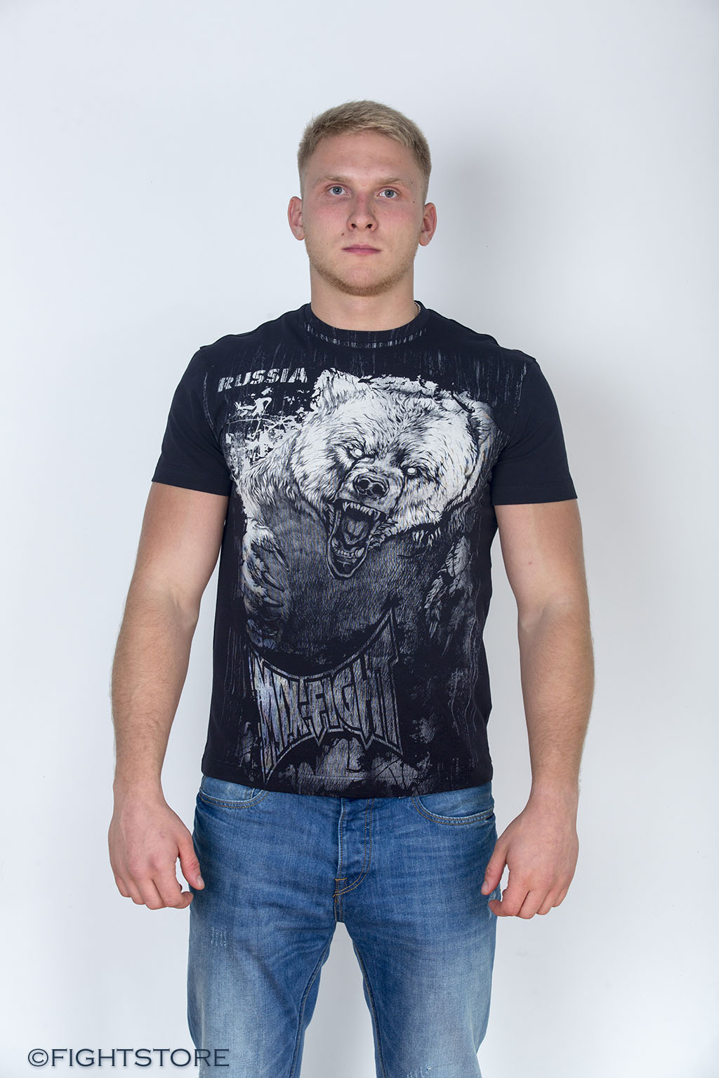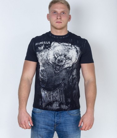 Черная футболка Russian Bear из отличного материала, идеально сидит по фигуре. Спереди принт с изображением ревущего медведя - символа России, с которым ее сравнивают во всем мире, надписи RUSSIA и MIX-FIGHT, на спине изображение двуглавого орла со скипетром и державой, надпись Mixed Martial Arts . Уникальная футболка для поклонников стильной одежды с символикой единоборств и ММА по самой выгодной цене в интернете.
